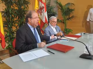 El presidente de la Junta, Juan Vicente Herrera, y Francisco Luzón, presidente de la Fundación que lleva su nombre, han presentado el acuerdo este martes en la sede de la Consejería de Sanidad, donde se ha dado a conocer el contenido del mismo, un documento que es similar al rubricado ya con otras 10 regiones de España.
