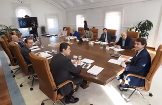 El presidente de la Junta de Castilla y León, Alfonso Fernández Mañueco (centro), y los consejeros en la reunión extraordinaria del Consejo de Gobierno por el Coronavirus. - Photogenic/M.A Santos - Europa Press