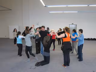 Entre los maestros de la formación realizada este fin de semana se encuentran Marta y Marcos, dos bailarines con síndrome de Down que, ya experimentados en estas lides, disfrutan de la música y comparten sensaciones y práctica con sus pupilos, que al final de la sesión reconocían la importancia y el gran interés que estas iniciativas tienen para ellos, al margen de si mantienen o no relación con colectivos de personas con discapacidad.