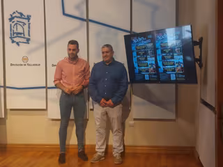 El alcalde de Tudela de Duero, Óscar Rodríguez de las Heras, y el diputado provincial Roberto Migallón en la presentación del 'XXVIII Noches al Duero', el ciclo de conciertos y espectáculos de la localidad vallisoletana. - EUROPA PRESS