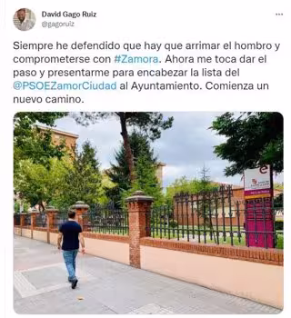 El portavoz del Partido Socialista en el Ayuntamiento de Zamora, David Gago, ha formalizado su candidatura para el proceso de elecciones primarias de cara a ser elegido como cabeza de lista del PSOE a la Alcaldía de Zamora en el año 2023. Gago ha tomado esta decisión "tras años de trabajo como concejal del PSOE en el Ayuntamiento de Zamora y tras haber consultado con los compañeros" tanto del grupo municipal como de la formación provincial.