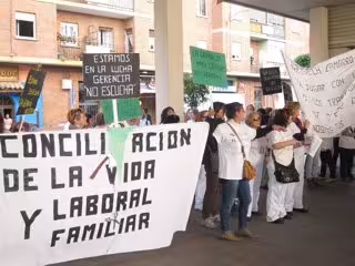 Los manifestantes, ataviados con batas blancas frente a la sede de la Gerencia, han coreado lemas como "qué pasa, qué pasa, que no nos ven por casa. Qué ocurre, qué ocurre, vivimos en el curre", para pedir el aumento de media hora al día para evitar la acumulación de jornadas, lo cual supone "el despido de interinos" y la "supresión de descansos".