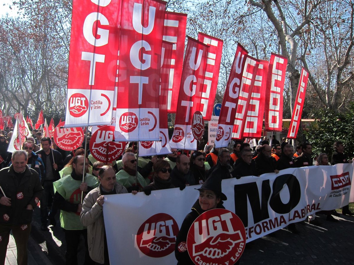 Decenas de miles de castellanoleoneses --en torno a 40.000 manifestantes-- se han echado a la calle este domingo en las distintas capitales de provincia de la Comunidad para protestar contra la reforma aprobada en Consejo de Ministros, una modificación del marco laboral que "sobrepasa todas las líneas rojas", según ha señalado el secretario regional de UGT, Agustín Prieto.