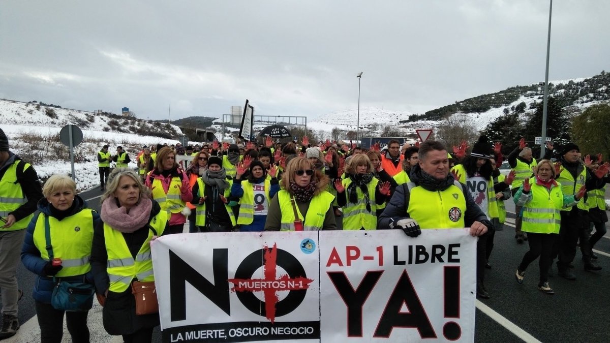 El corte, organizado por la Plataforma de Afectados por la N-1, se ha querido hacer coincidir con el comienzo de diciembre, justo cuando queda un año para el fin de la concesión de la autopista de peaje AP-1.