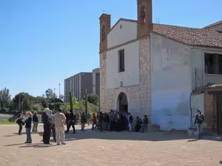 En los alrededores del recinto podían escucharse las dulzainas de algunos grupos folclóricos, mientras en torno al templo había instalados varios puestos de venta de dulces, refrescos o carracas.