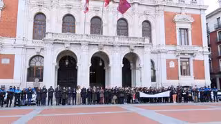 Varias decenas de vallisoletanos, junto a los miembros de la Corporación municipal y un grupo de agentes de la Policía Municipal de la ciudad han participado ante la fachada del Ayuntamiento en un acto de minuto de silencio para mostrar el dolor por la muerte del joven Sergio Delgado, como consecuencia de una agresión sufrida cuando se encontraba en Burgos, y para apoyar a sus familiares.