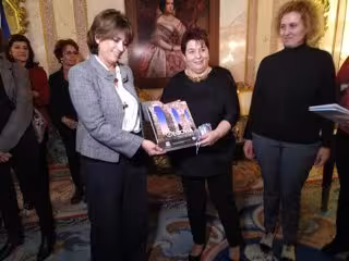 Delgado ha visitado en la capital segoviana las exposiciones 'Pasos sin tierra. Homenaje a las mujeres del exilio republicano' y 'Memorial democrático', para rendir homenaje a las mujeres exiliadas durante la Guerra Civil y los presos políticos del franquismo, además de reunirse en el Ayuntamiento con la alcaldesa, Clara Luquero.