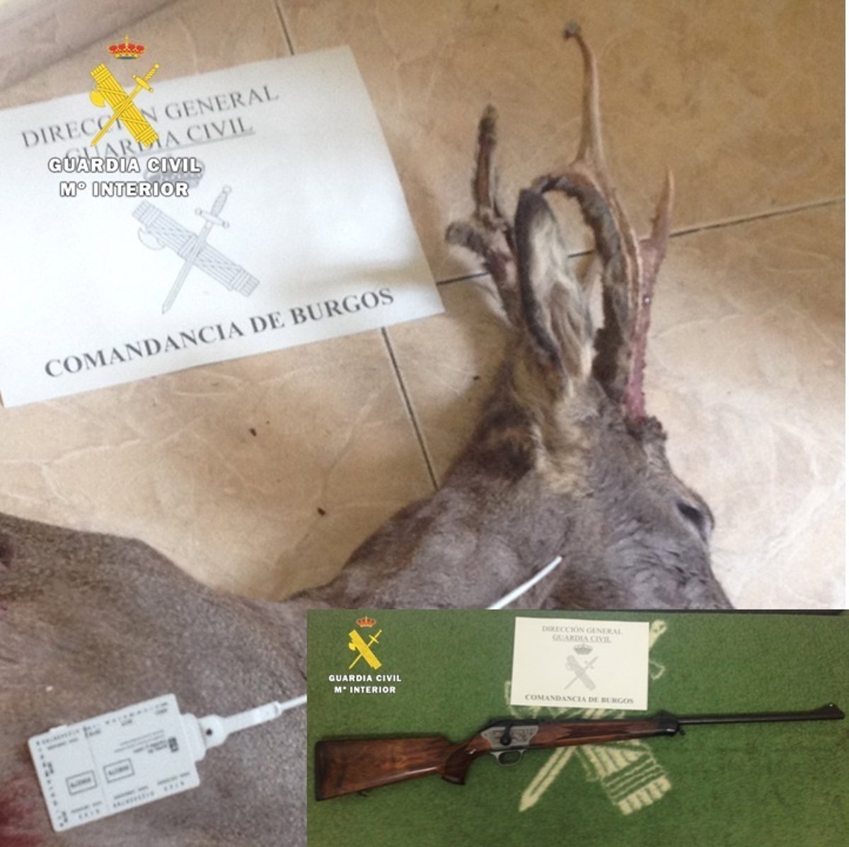 Un registro superficial al maletero permitió descubrir el cuerpo sin vida de un corzo macho, recién abatido. El animal carecía del precinto que debe colocarse en la cuerna una vez capturado, conforme a lo estipulado en la Ley de Caza en la Comunidad, sobre el precintado de piezas de caza, y que autoriza el lícito traslado y transporte del cérvido.