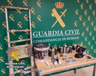 Asimismo, alrededor del vehículo se hallaron bolsas que antes no se encontraban allí, y en su interior más de 20 botes de spray recién usados y de diversos colores, además de boquillas y una mascarilla para preservar de inhalaciones tóxicas.