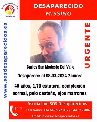 La asociación SOS Desaparecidos ha ofrecido información este lunes sobre la desaparición de un hombre de 40 años de Zamora que no da señales de vida desde hace tres días.
