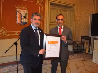 El edil ha recibido en el Ayuntamiento de Salamanca esta certificación de manos del director de Relaciones Institucionales de la empresa certificadora AAplus, Federico Martínez Martínez.