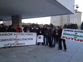 Tras escuchar la pregunta oral con la que ha arrancado el Pleno a través de la que López ha pedido a Herrera que detalle que acciones va a realizar la Junta para evitar el fin de las ayudas del carbón más allá de 2015 el grupo de seis mineros se pusieron en pie y, ataviados con camisetas en defensa del futuro del carbón, desplegaron una pancarta en la que se ha podido leer 'Carbón autóctono + reindustrialización = FUTURO'.