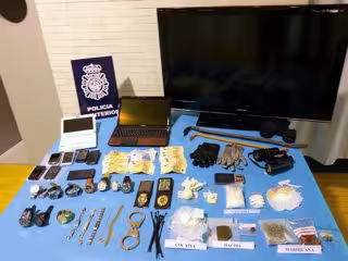 En los registros domiciliarios y de vehículos, los efectivos han logrado la aprehensión de una pistola simulada, unas placas falsas del Cuerpo Nacional de Policía y de la Guardia Civil, grilletes, bridas, prismáticos, joyas, relojes, nueve teléfonos móviles, aparatos electrónicos, ordenadores, bebidas alcohólicas, prendas de vestir y material deportivo, han agregado las mismas fuentes.