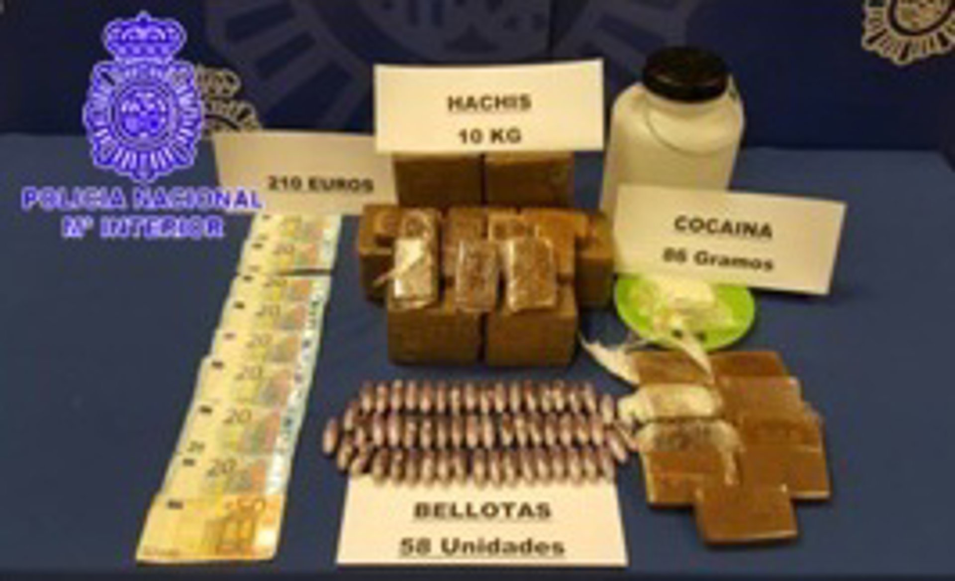 En el interior del domicilio, la policía se incautó de casi 12 kilos de hachís y 80 gramos de 'coca', junto con dinero en metálico y diversos utensilios para la manipulación de la mercancía, entre ellos una balanza de precisión, todo ello valorado en 66.773,70 euros.