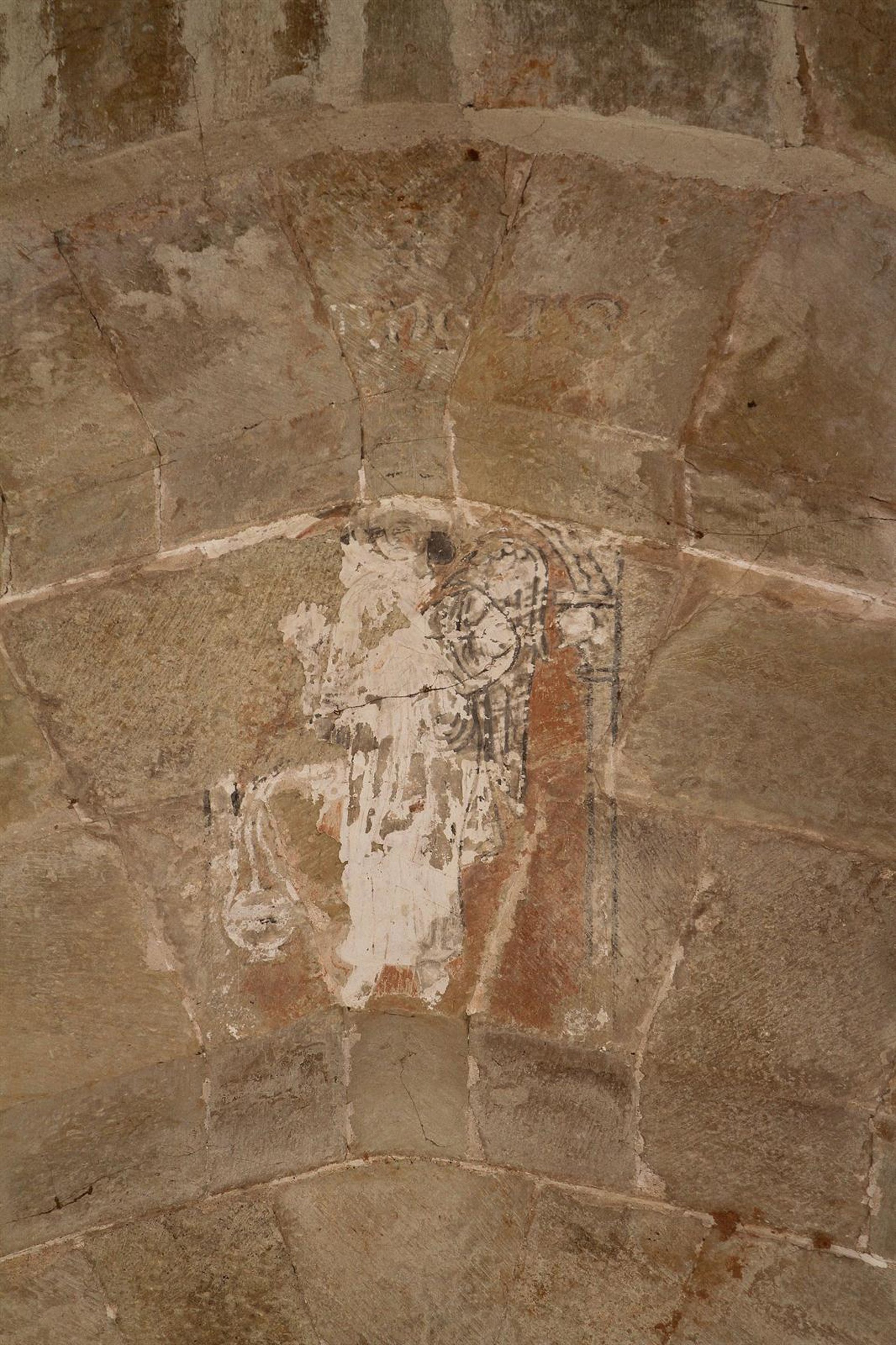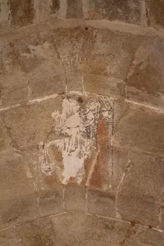 "La aparición de esta figura en un emplazamiento tan particular, como es el arco toral del crucero, puede indicar que su conservación no fue tan casual. La imagen estuvo cubierta de cal y da la impresión de que en el momento del desencalado se descubrió y se decidió dejar a la vista, aunque su contemplación desde la nave no fuera fácil", señala.