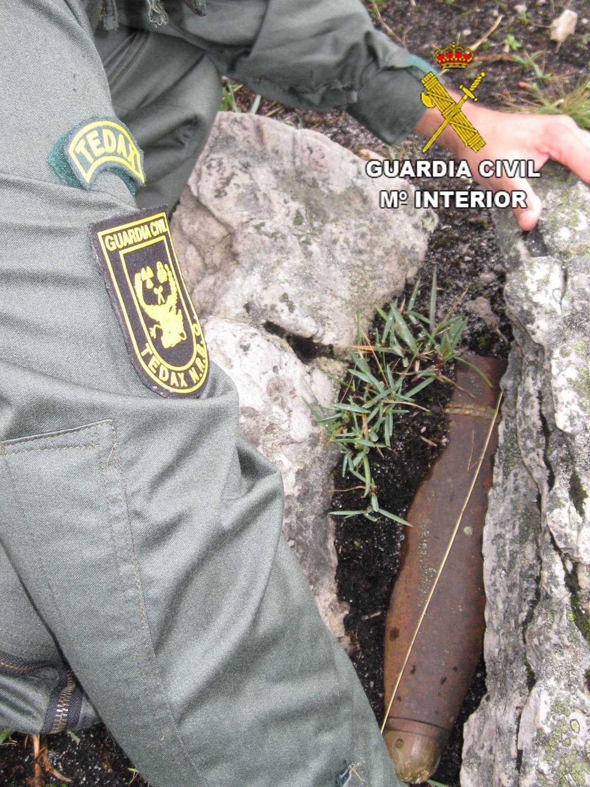 El artefacto fue identificado como un proyectil de artillería de 105 milímetros de calibre, el cual se encontraba cargado y gravemente deteriorado, sobre todo su sistema de iniciación, según ha informado la Benemérita a Europa Press.