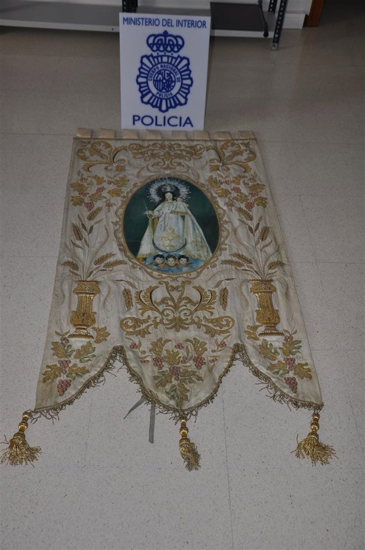 El estandarte tiene "incalculable valor cultural, sentimental y económico" y data de 1980; está bordado en oro y con un lienzo pintado con la imagen de la Virgen del Consuelo.
