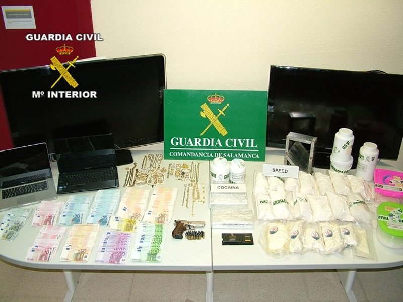La Guardia Civil, en el marco de la operación 'Kiraly', ha intervenido 90 kilos de cocaína a dos redes internacionales dedicadas al tráfico de esta droga entre Sudamérica y España y a la elaboración de drogas sintéticas. Entre los detenidos se encuentran el delincuente salmantino A.J.G.C, alias 'El Rubio', y el enlace venezolano de las dos redes ahora desarticuladas.