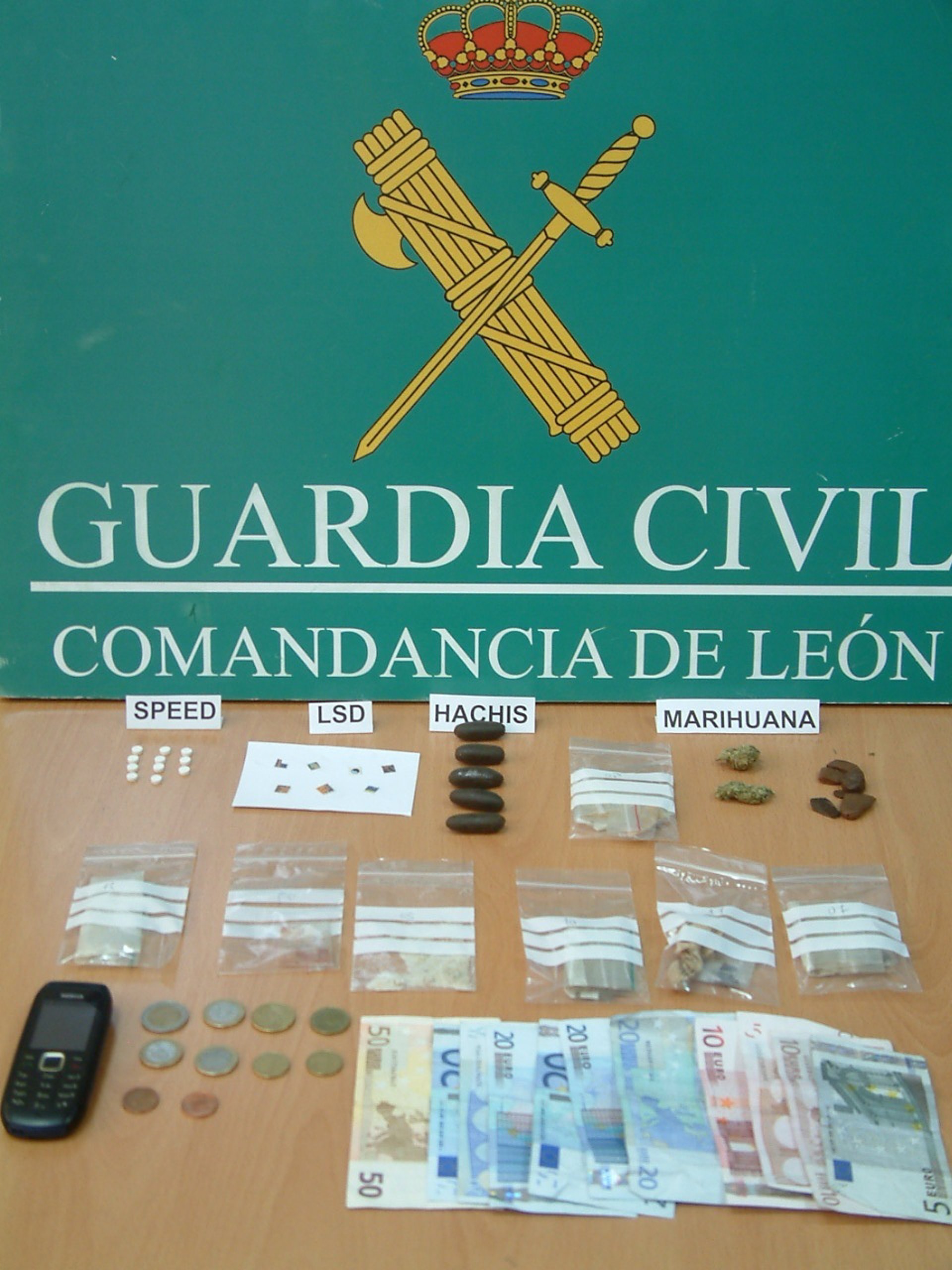 Efectivos de la Guardia Civil de la Comandancia de León han detenido a cuatro personas como presuntas autoras de un delito contra la salud pública en la modalidad de tráfico de drogas, a las que se les han incautado 460 gramos de cocaína, 40 gramos de hachís, 15 gramos de marihuana, siete dosis de LSD y 11 pastillas de Speed.