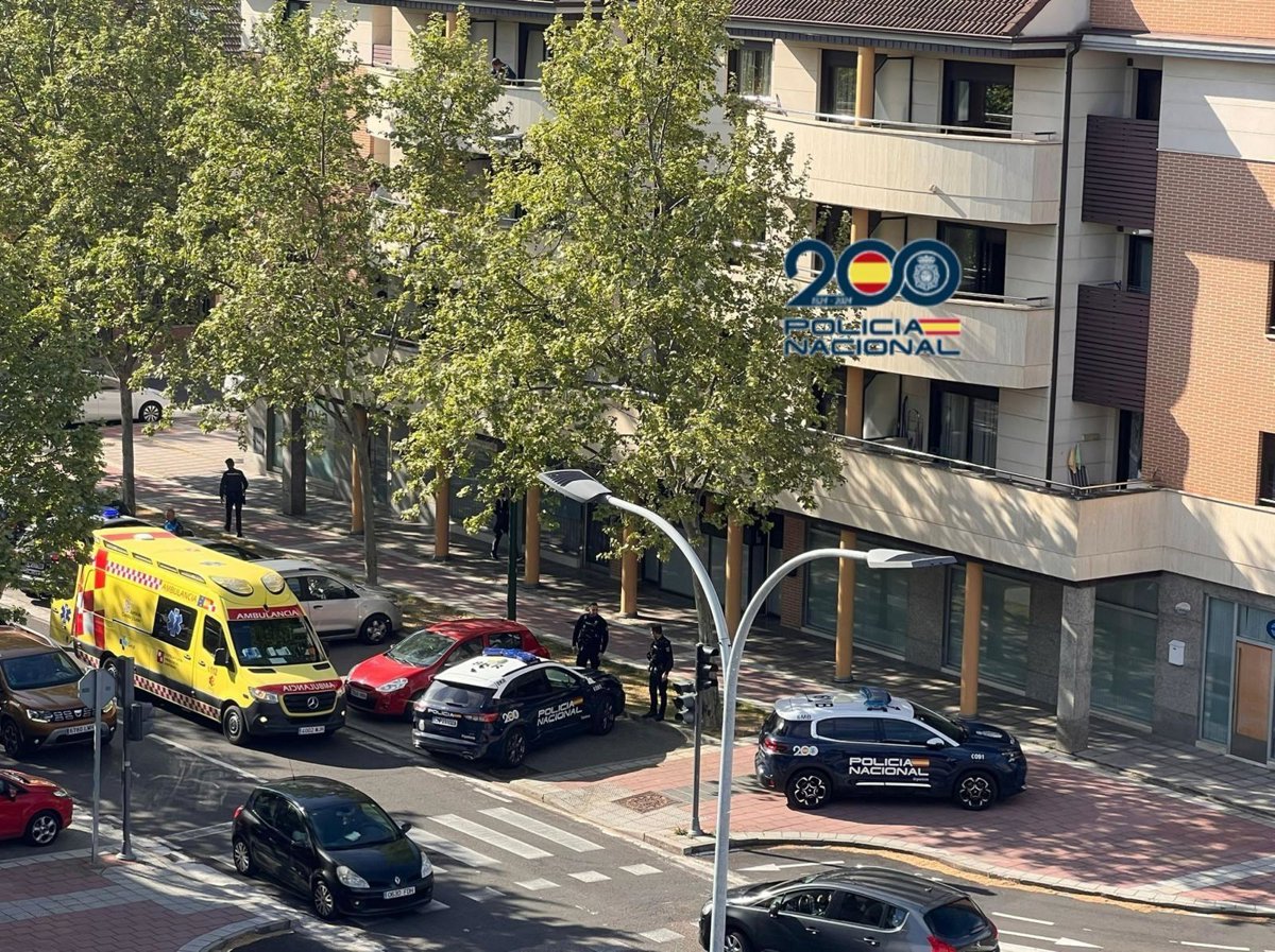 Policía Nacional en el exterior de la vivienda donde ocurrió la agresión con cuchillo de un varón a su compañero de piso en Valladolid. - POLICÍA NACIONAL DE VALLADOLID