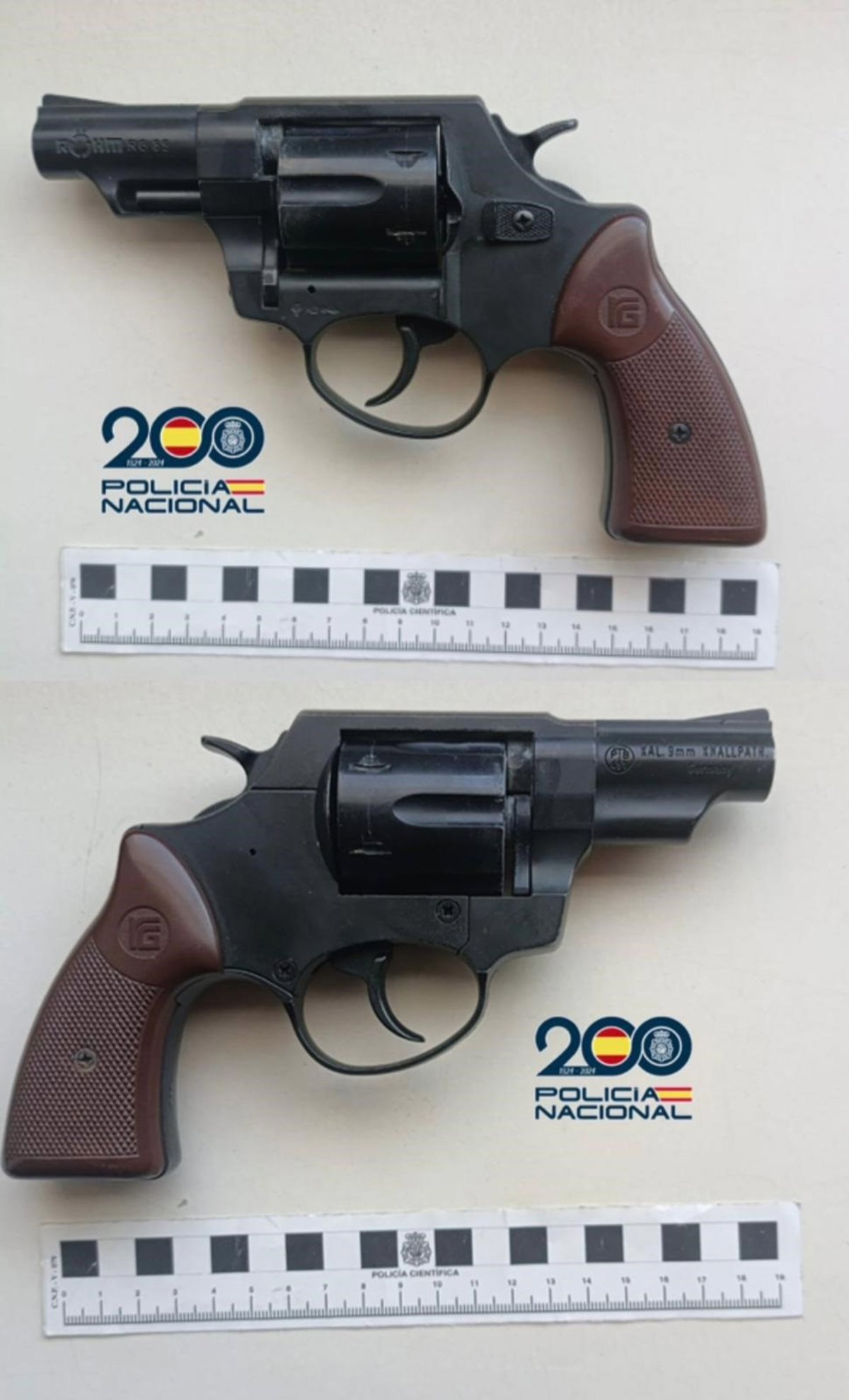 El revólver detonador con apariencia externa de arma real utilizado por el detenido - POLICÍA NACIONAL