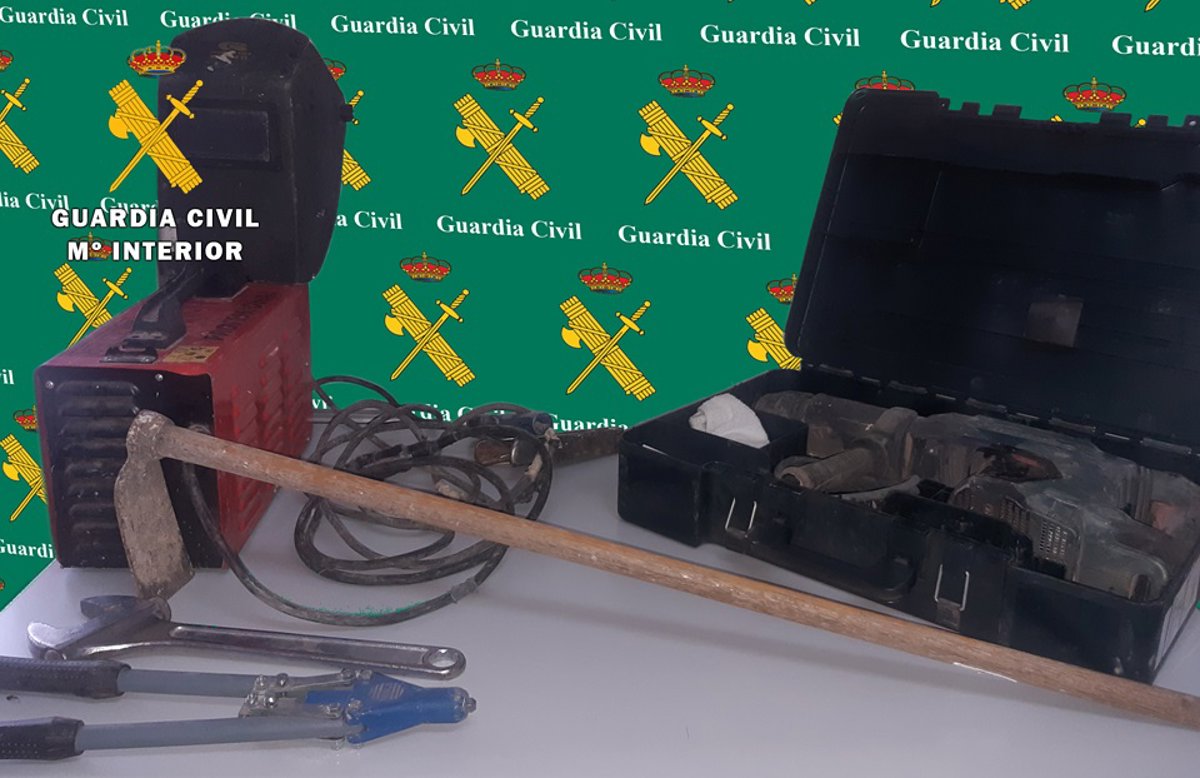 En su poder se ha encontrado todas las herramientas manuales y eléctricas denunciadas como sustraídas, que ha sido recuperadas y entregadas al centro de formación. En concreto, se trataba de una máquina de soldar, una remachadora profesional, un taladro picador, una llave inglesa, una azada, una escalera telescópica y una careta de soldar.