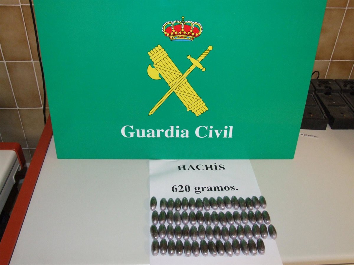 Efectivos de la Guardia Civil detuvieron en los extrarradios de Burgos a un hombre de 41 años, A.E.M, al que se le intervinieron 620 gramos de hachís en "bellotas", informaron a Europa Press fuentes de la Subdelegación del Gobierno.