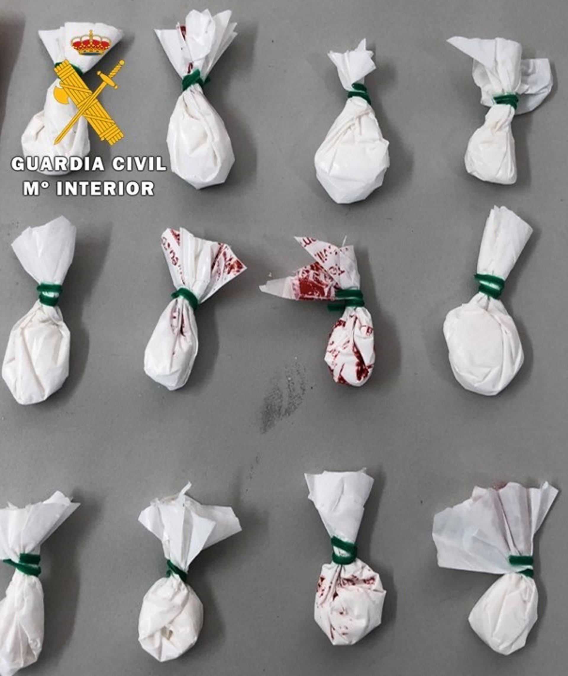 Fue al salir del coche cuando quedó a la vista, sobre el asiento, un envoltorio de plástico a modo de bolsita, cerrado con un precinto de alambre plastificado, como si de una papelina de droga se tratara. Un registro a sus pertenencias destapó un monedero y en su interior otros once envoltorios similares y algo más 305 euros en billetes y monedas.