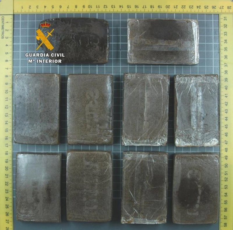 Apoyados por el Servicio Cinológico, con uno de los perros adiestrados en detección de estupefacientes, en uno de los locales inspeccionados, el animal marcaba la posición junto a un sofá. Un registro más profundo permitió localizar, oculto en su interior, diez tabletas de una sustancia de color marrón que resultó ser hachís. Cada tableta arrojó un peso 100 gramos.