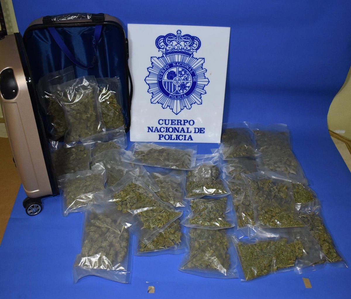 Finalmente, tras contar con evidencias probatorias de la actividad que este individuo estaba desarrollando, agentes de la Policía Nacional de la Comisaría Provincial de Burgos, llevaron a cabo su detención cuando salía de un portal situado en una céntrica avenida de la capital, portando una maleta. En su interior llevaba 24 bolsas transparentes que contenían una sustancia vegetal, que por su aspecto y olor parecía marihuana.