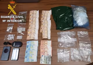 En el domicilio se encontró dispuesto para su venta distinta cantidad de marihuana y de cocaína, así como dinero en metálico y utensilios para pesaje, embalaje y distribución de las sustancias estupefacientes.