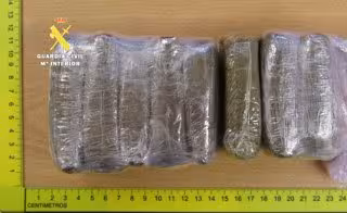 En el interior de la bolsa se localizaron ocho tabletas de una sustancia compacta de color marrón, compatible con el hachís en cuanto a textura y olor se refiere. Un primer análisis arrojó positivo en este tipo de estupefaciente, que arrojó un peso de 800 gramos, por lo que el poseedor de la sustancia fue detenido.