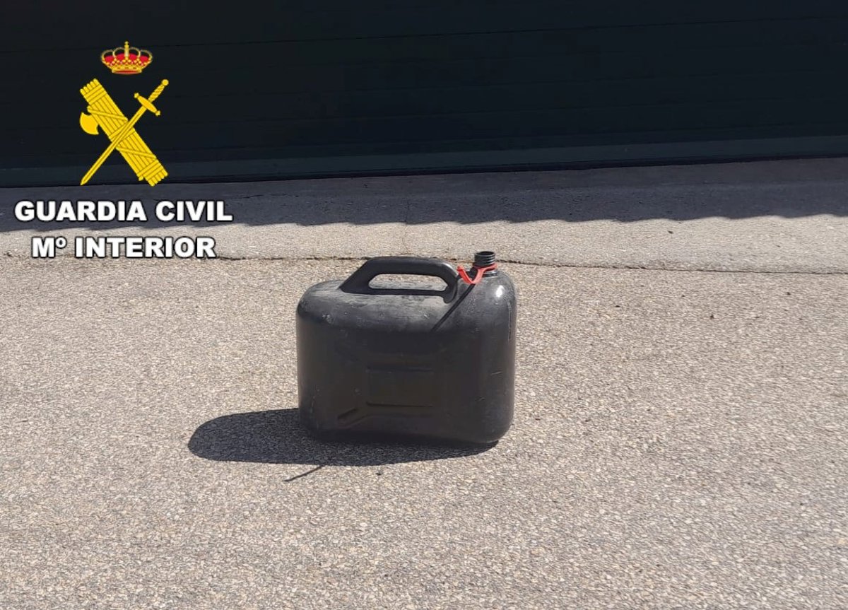 Garrafa con la que el presunto autor de los hechos vertió gasolina en la vía pública en San Emiliano (León) para prenderle fuego. - SUBDELEGACIÓN DEL GOBIERNO EN LEÓN
