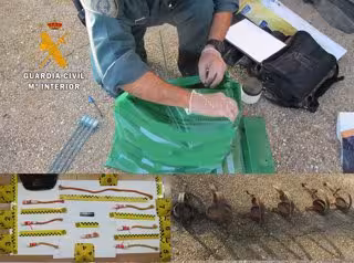 Tras la búsqueda de las causas por los alrededores del paraje donde habían aparecido los cadáveres, se inspeccionaron varias parcelas. Dentro de una finca vallada, en una nave de aperos, se localizaron e intervinieron seis cepos de caza mayor, un bolso con siete mechas incendiarias listas para su uso y una sustancia granulada que pudiera ser veneno, que se recogió para su posterior análisis.