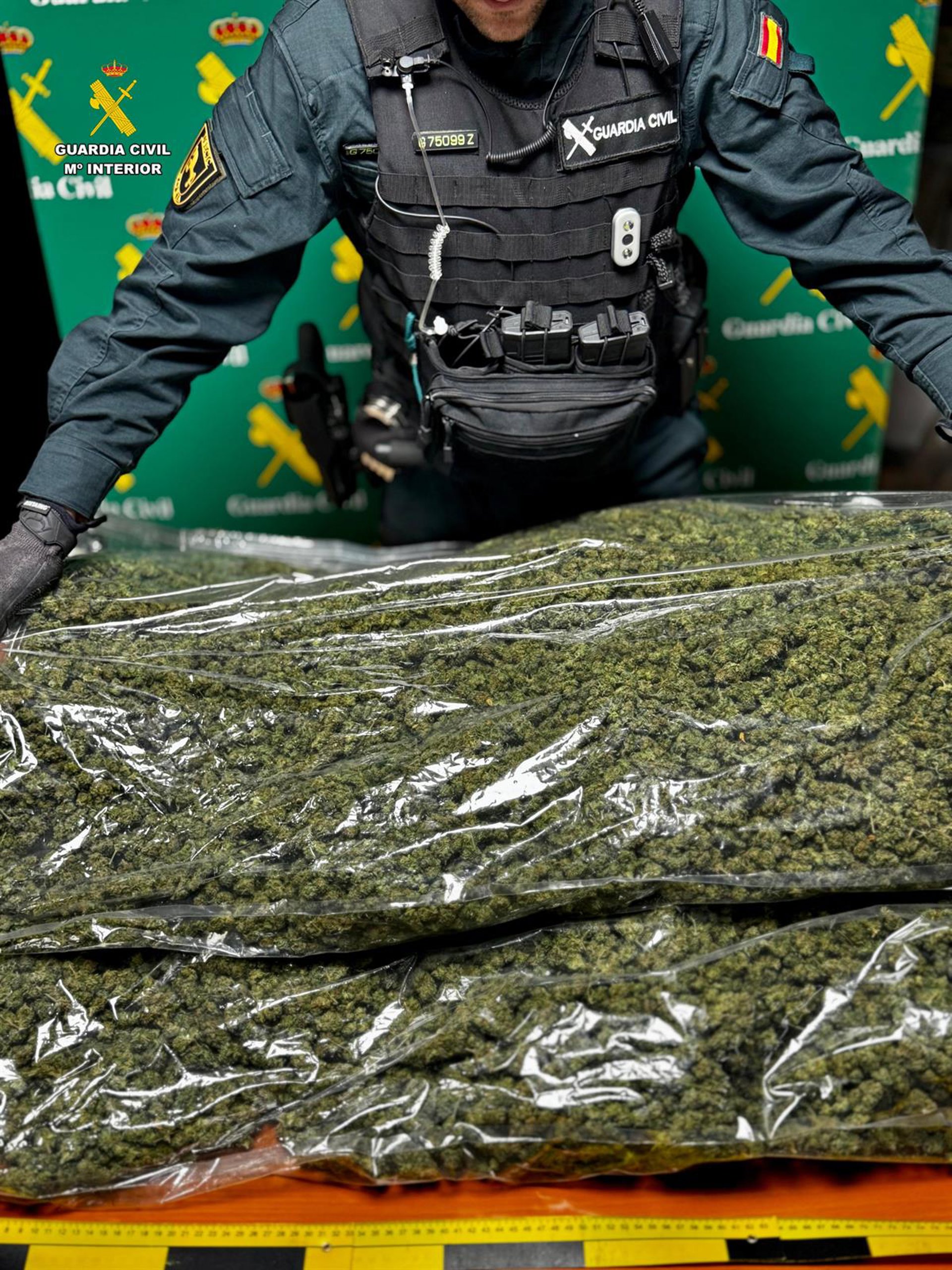 La Guardia Civil de Soria ha detenido a un varón que circulaba por la autovía A-2 con cerca de nueve kilogramos de cannabis sativa ocultos en el interior de su vehículo, cuya valoración total en el mercado ilícito podría oscilar entre 16.900 euros y 60.000 euros.