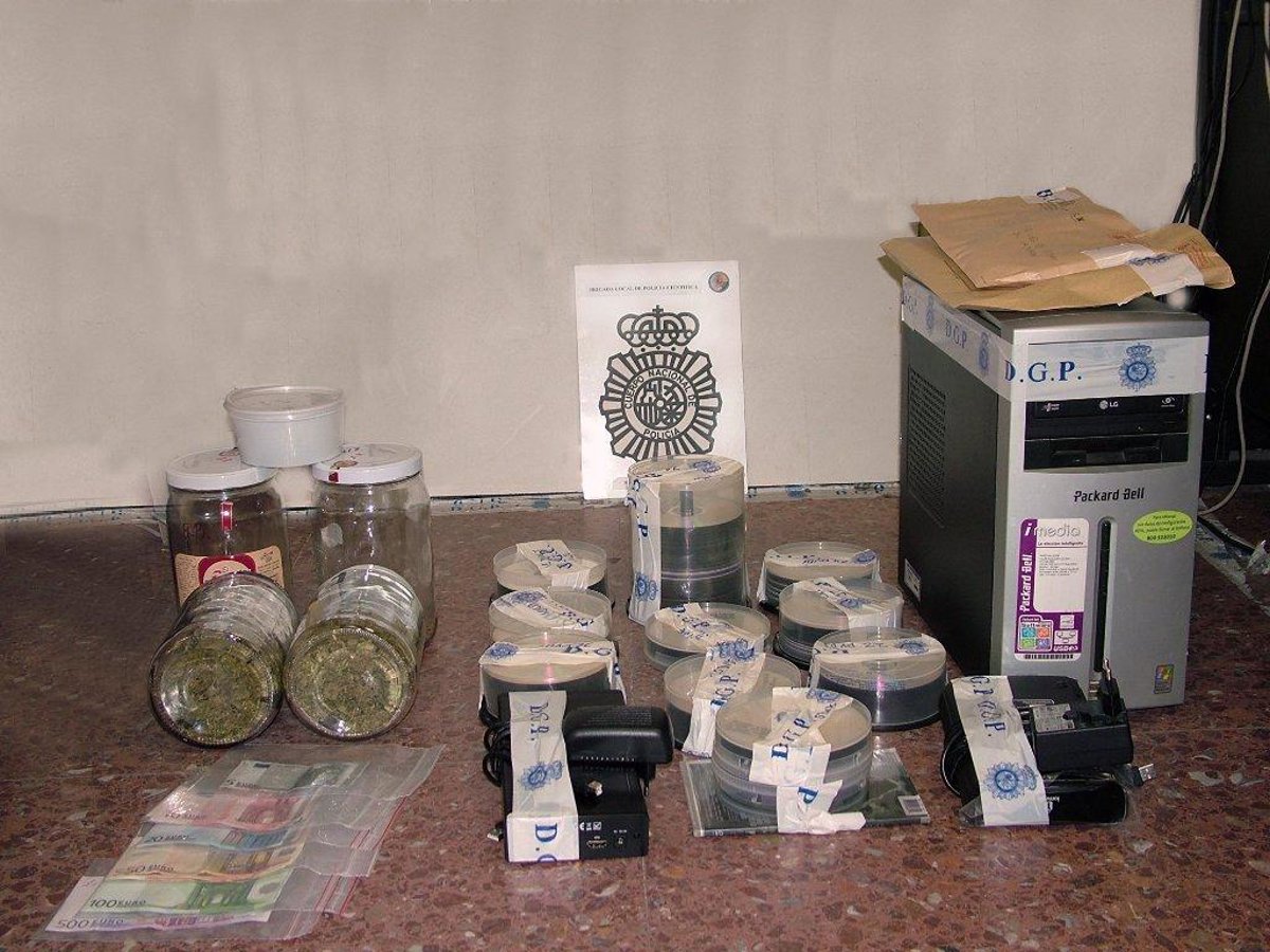 En el registro domiciliario le fue intervenido material informático y numerosos archivos con películas de pornografía infantil además de que se le intervinieron cuatro botes que contenían marihuana.