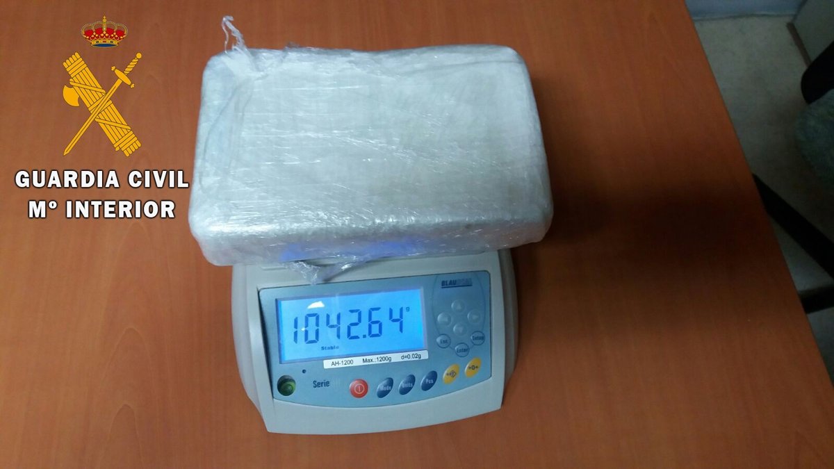 Al seguir a este último, los guardias civiles consiguieron alcanzarle y recuperar la bolsa, que había tirado en las inmediaciones, en la que llevaba, como luego pudieron comprobar, 1.042 gramos de cocaína.