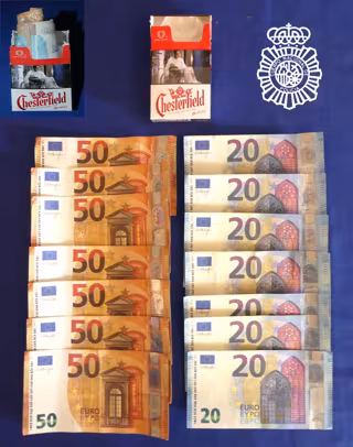 A continuación, al examinar la zona, uno de los agentes localizó, en el sitio indicado, un paquete de tabaco, en cuyo interior había siete billetes de 50 euros y siete billetes de 20 euros, todos ellos presuntamente falsos.