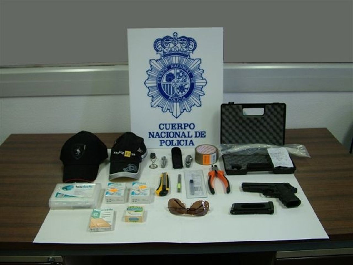 Los agentes le intervinieron un arma de aire comprimido con apariencia de auténtica arma de fuego, así como dos navajas, un alicate, un cúter, bridas plásticas y efectos para dificultar su identificación. Los objetos fueron encontrados en el vehículo en el que se había trasladado desde Madrid hasta Segovia.