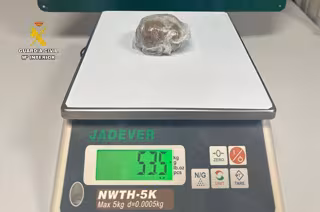 Así, observaron que el conductor portaba un objeto redondo en el interior de su sudadera, que resultó ser hachís, con un peso de 53,5 gramos en la báscula, por lo que procedieron a la detención del joven.