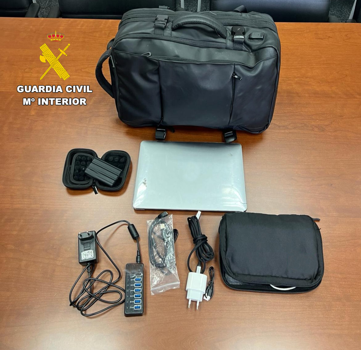 Algunos de los efectos recuperados a la persona detenida, acusada de trece delitos por robos de coches y de robos en interior de vehículos. - GUARDIA CIVIL