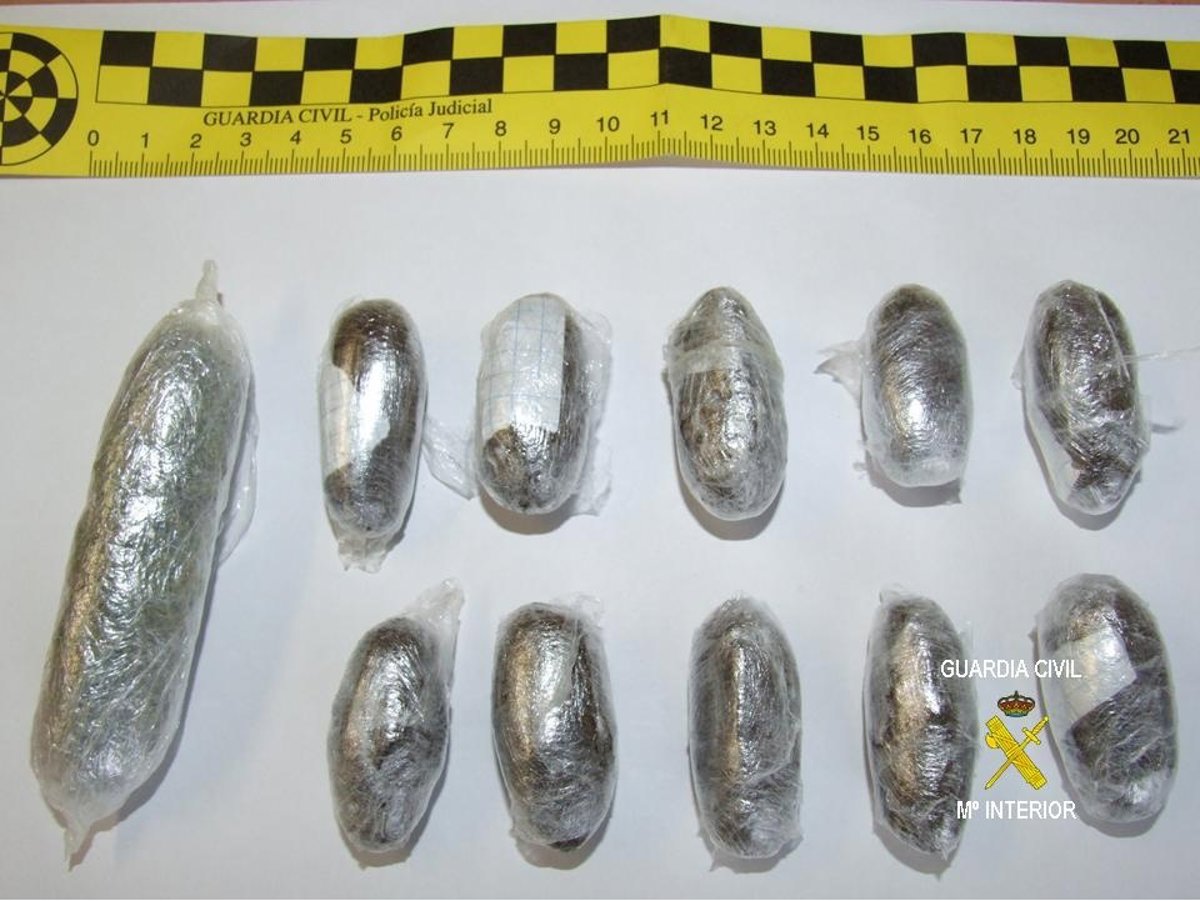 Un registro a las prendas de la persona demostró que ésta portaba, oculto entre la ropa interior, 10 'óvulos' de hachís con un peso total de 90 gramos, así como 8 gramos de marihuana, todo ello escondido en un preservativo para evitar ser detectado y supuestamente con la idea de ser introducido en el Centro Penitenciario.