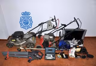 Entre los efectos recuperados hay un cortacésped, una desbrozadora, un escarificador a motor, un soplador, una caja de puros con seis unidades, un reproductor de vídeo, una maquina de afeitar eléctrica, una plancha, un foco, una consola de juegos, un ratón de ordenador o una caja con su teléfono inalámbrico digital.