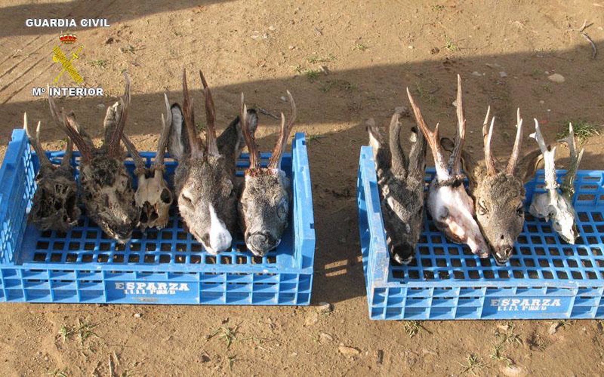 De su domicilio se han recuperado más de cien cabezas de corzo y numerosos trofeos y objetos de caza furtiva. Tanto la Guardia Civil como los agentes medioambientales llevaban tiempo en servicios de apostadero y vigilancia para localizar al autor de numerosos lazos de captura de corzos que estaban instalados en los cotos de caza de Hacina y Pinilla de los Barruecos.