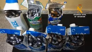 La Sección de Intervención Rápida de la Guardia Civil ha detenido en Salamanca a un hombre de 31 años, M. CH. A., por presuntamente circular en un coche con 5,5 kilogramos de hachís, que los llevaba distribuidos en 557 bellotas dentro de envases de leche, zumo y gel.