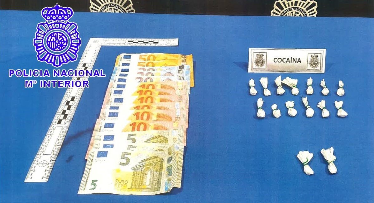 Por este motivo, y con los datos recabados por los agentes en su labor de investigación, se identificó al sospechoso, al que realizaron un cacheo superficial. En él se le intervino 13 envoltorios de plástico cerrados con alambre de jardinería verde que reaccionaba positivamente al test de cocaína -idénticos a los intervenidos al sujeto anterior- y 235 euros repartidos en dos billetes de 50, tres billetes de 20, seis billetes de diez y tres billetes de cinco euros.
