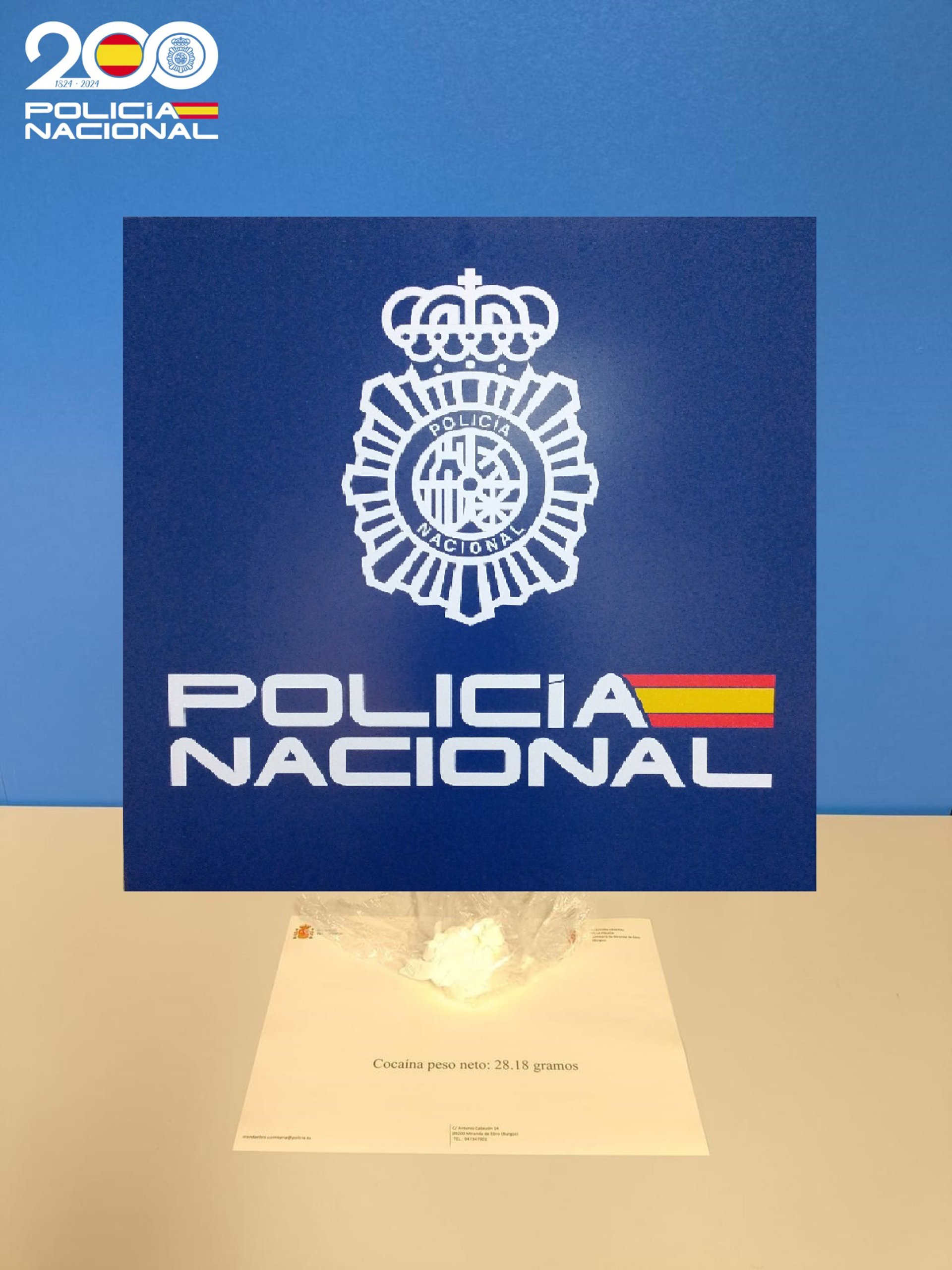 Agentes de Policía Nacional de la Comisaría Local de Miranda de Ebro (Burgos) han detenido a un hombre con 28,18 gramos de cocaína. La actuación policial tuvo lugar durante el desarrollo de un dispositivo ordinario de prevención de la Seguridad Ciudadana enfocado, entre otros objetivos, al control del consumo y menudeo de sustancias estupefacientes en vías, lugares o establecimientos públicos.