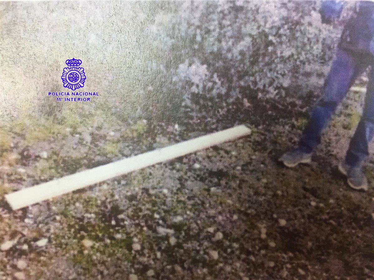 Tablón con puntas colocado por el detenido para impedir el paso de ciclistas. - POLICÍA NACIONAL