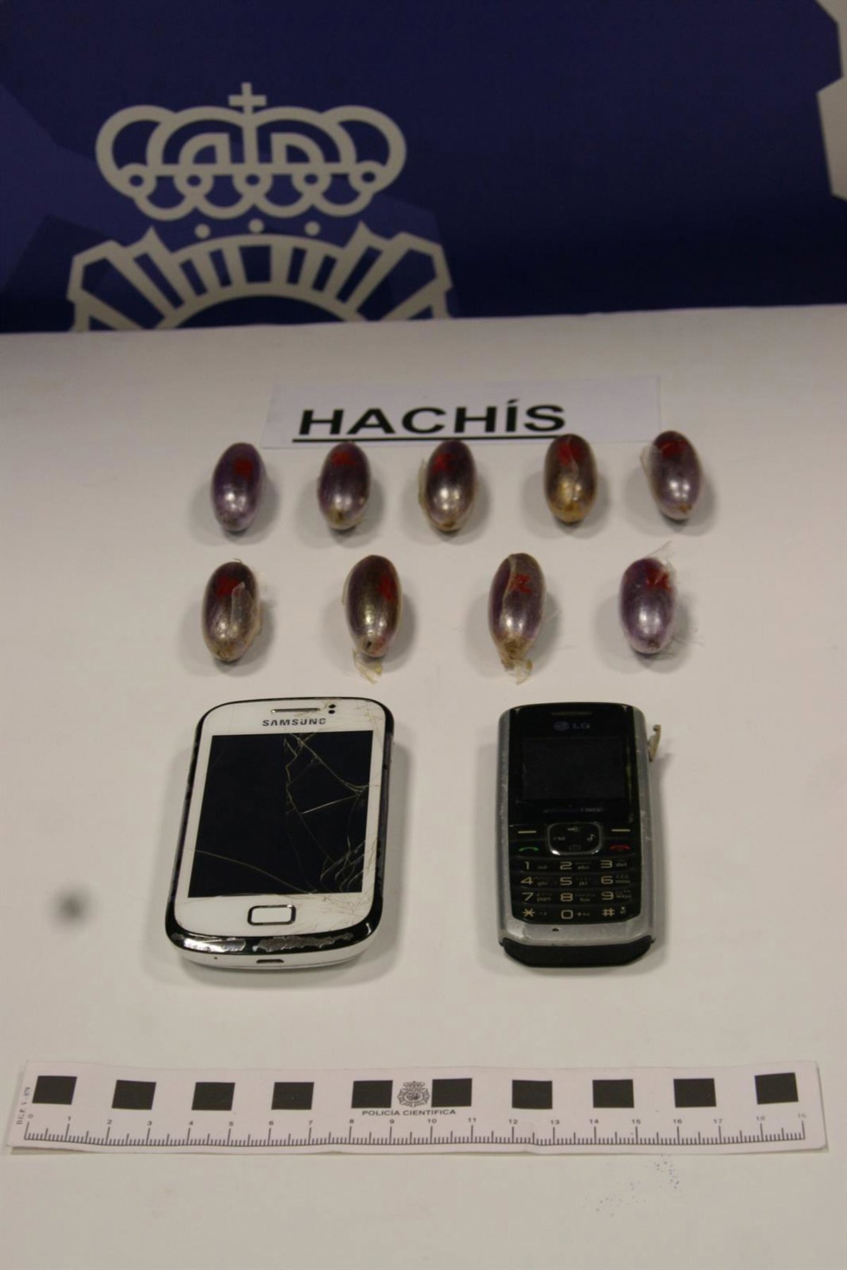 Los agentes procedieron a su identificación y posterior cacheo, en el que pudieron localizar nueve bellotas de hachís y dos teléfonos móviles. Tras su posterior pesaje se pudo comprobar que eran 92 gramos, con un valor en el mercado negro superior a 500 euros.