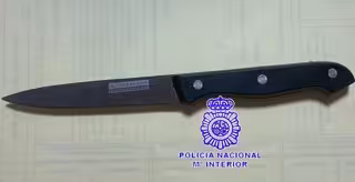 El presunto agresor, al advertir la presencia policial tiró al suelo el arma blanca, por lo que se procedió a la intervención del objeto y a su detención por su presunta implicación en lo sucedido.